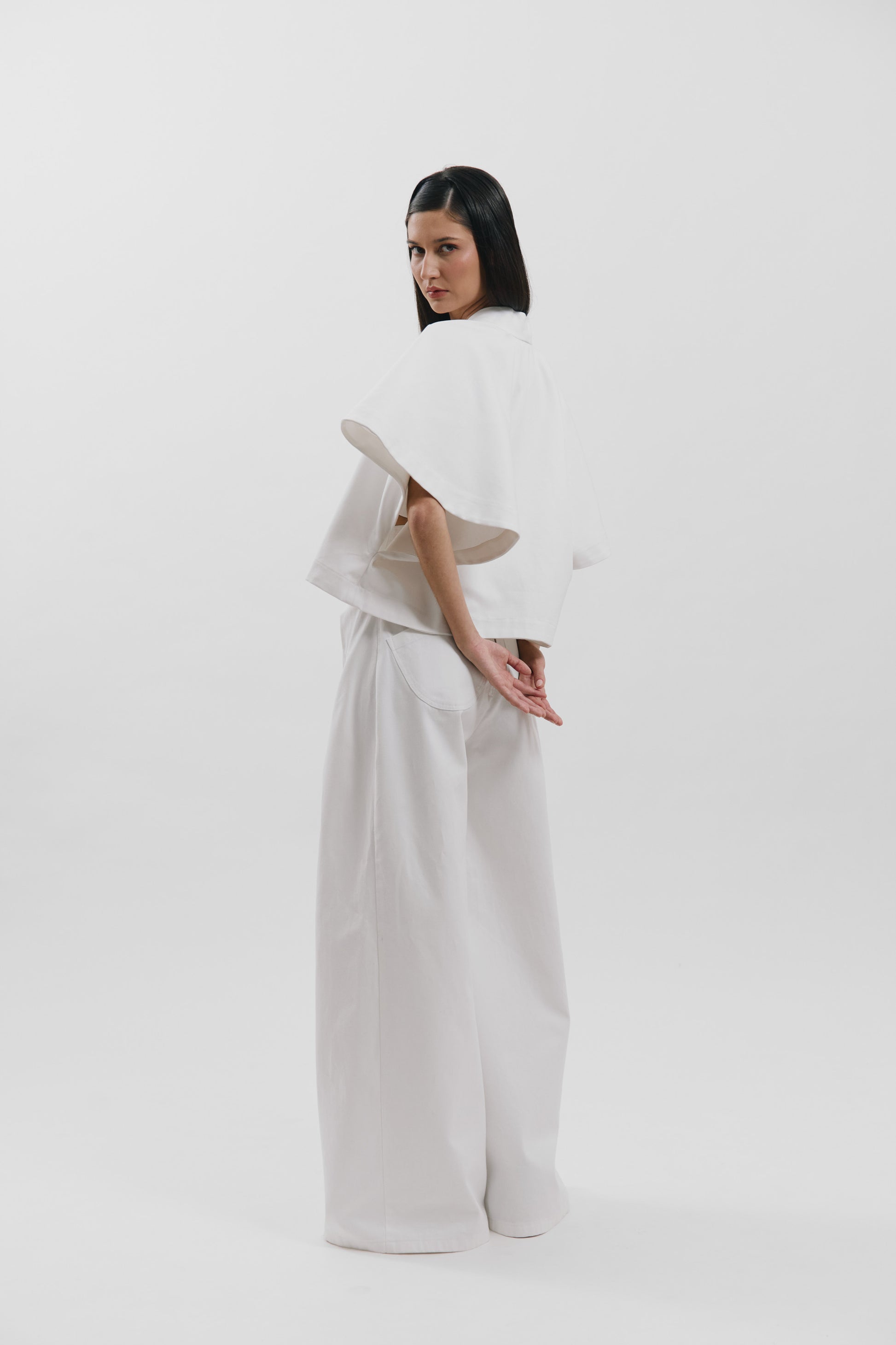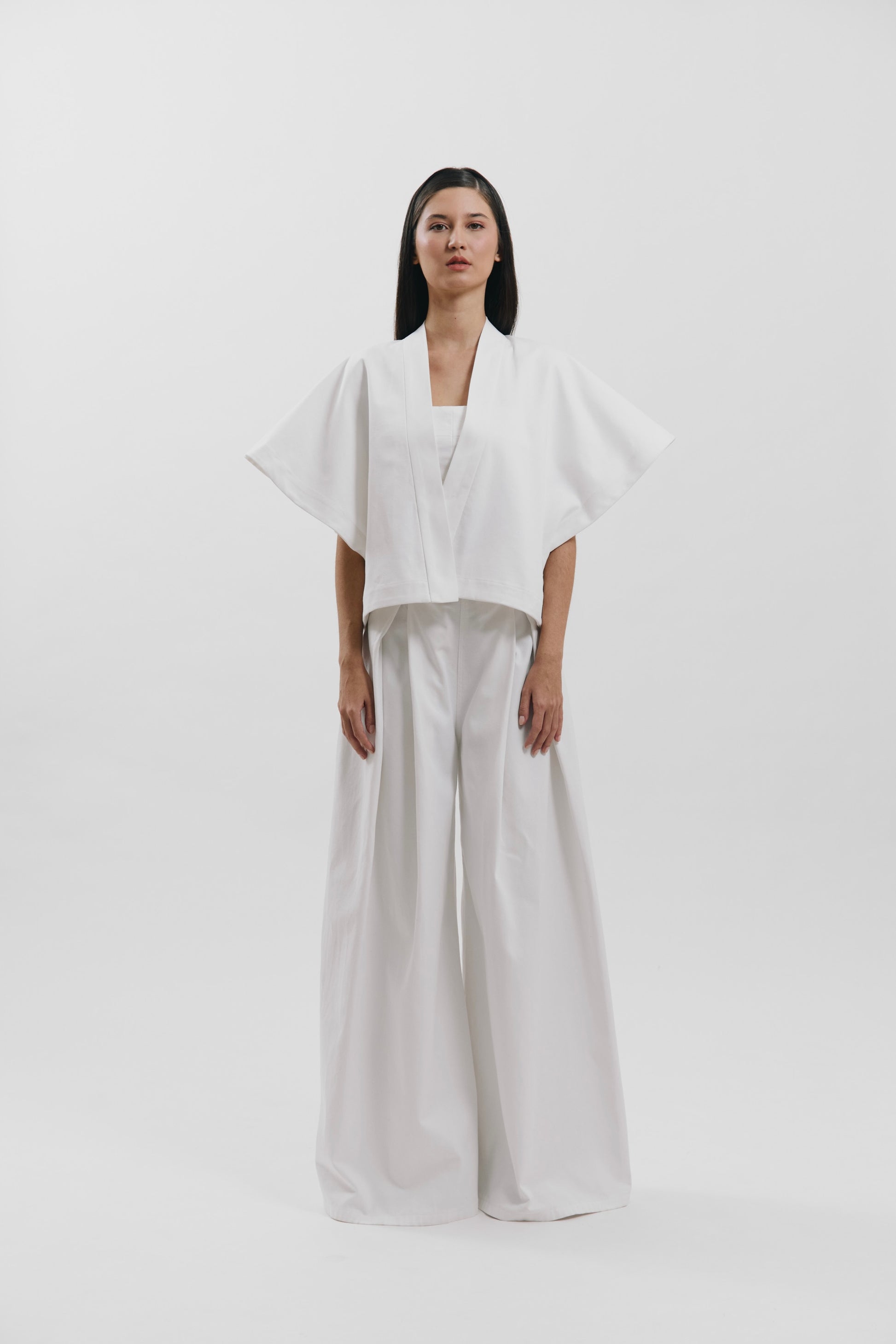 Chaqueta corta con mangas tipo capa extra grandes.